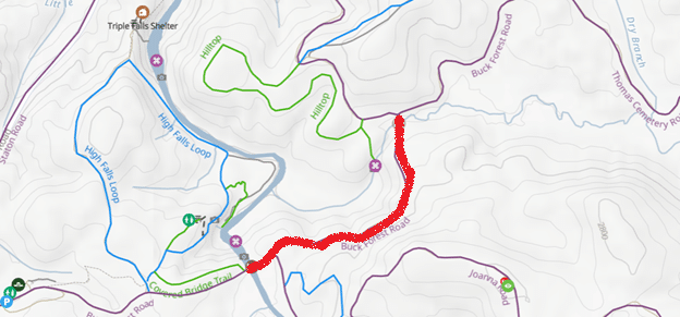 Reasonover Creek Trail will have intermittent and difficult to predict closures of the whole trail — most often concentrated around the weekends but not exclusively. The trail will remain closed between Lake Julia and Turkey Knob Double Track.